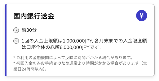 ※現在、国際銀行送金の入金は一時的にご利用いただけません。