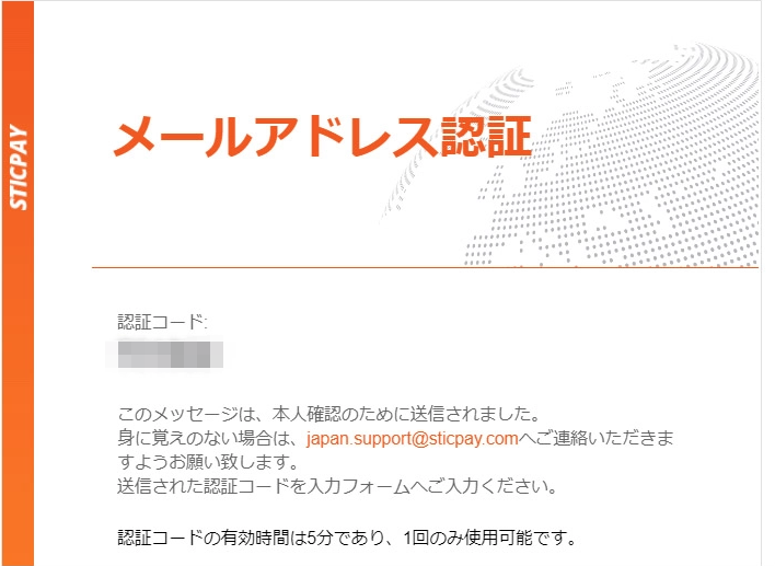 メールアドレス認証したら、認証コードをSTICPAYのページにコピペします。