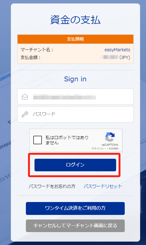 ⼊⾦ができない場合は、ご利⽤の銀⾏に確認し、カードのオンライン⽀払いが制限されていないかご確認ください。