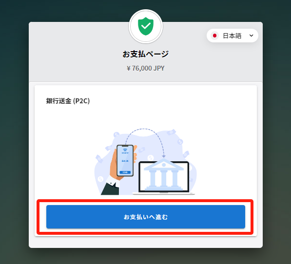 ⼊⾦額を確認した後、「お⽀払いへ進む」ボタンを押してください。