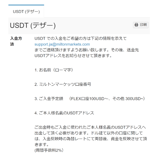 ⼊⾦⼿続き完了後、以下の4点を記載したメールを「support.ja@miltonmarkets.com」宛てに送信してください。