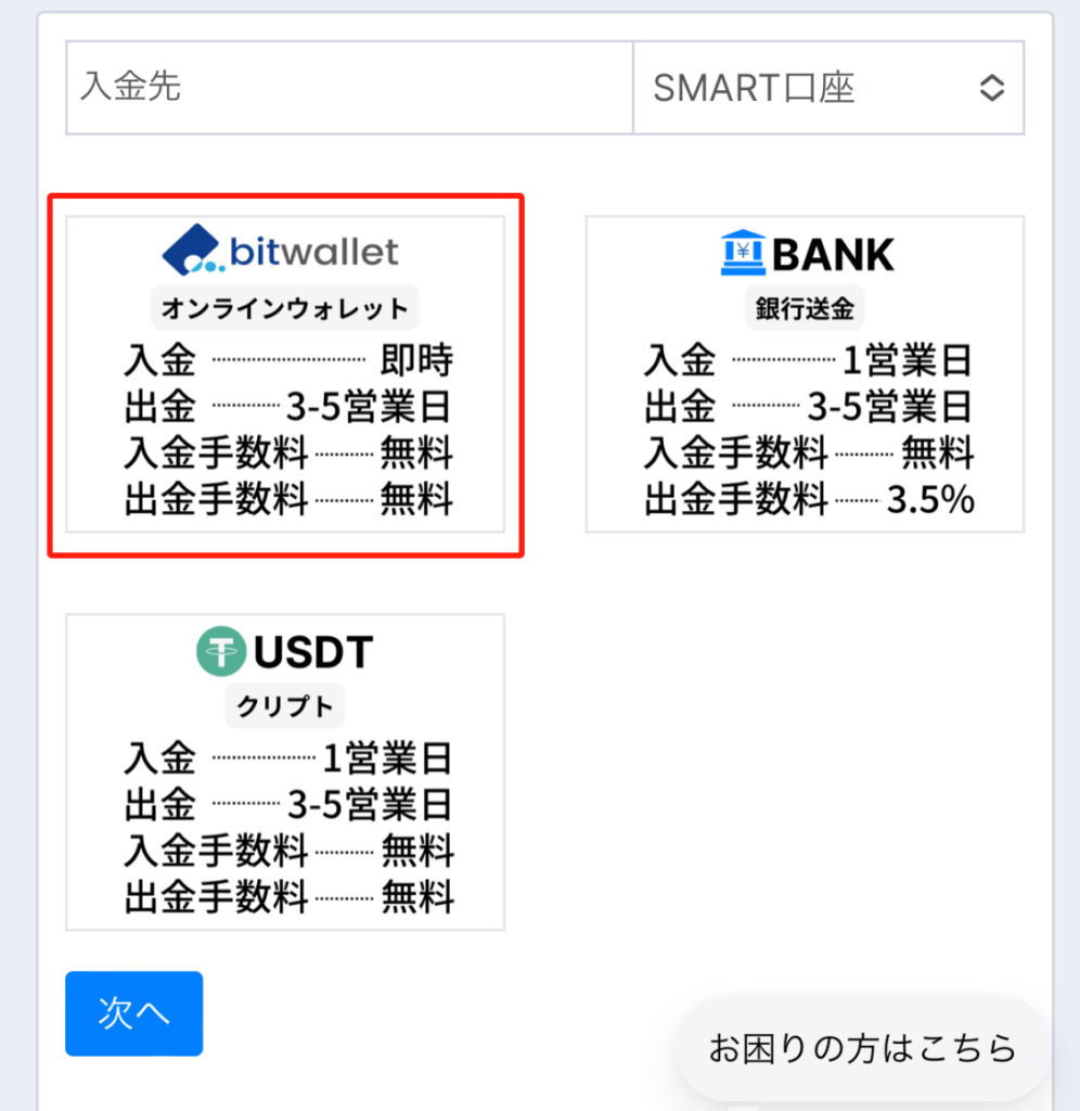 ⼊⾦⽅法⼀覧から「bitwallet」を選択してください。