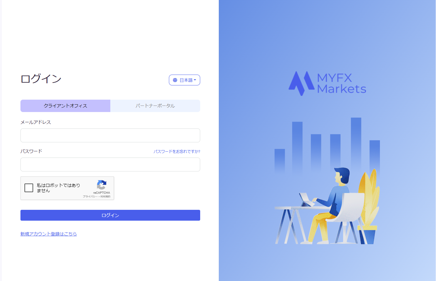 ログインページにアクセスし、メールアドレスとパスワードを入力後、「私はロボットではありません」にチェックを入れ、「ログイン」ボタンをクリックしてください。