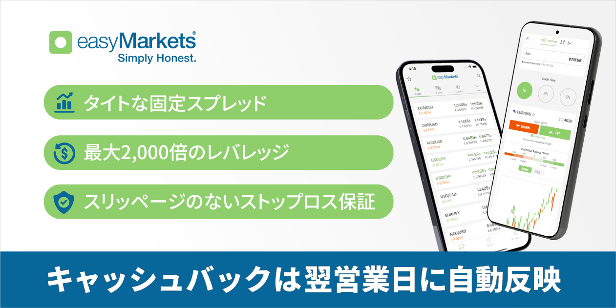 2001年に設⽴されたeasyMarketsは、2019年から⽇本市場に向けたサービスを開始し、海外FX業者としては珍しい「原則固定スプレッド(変動スプレッドもあり)」と「スリッページなし」での取引を提供しています。