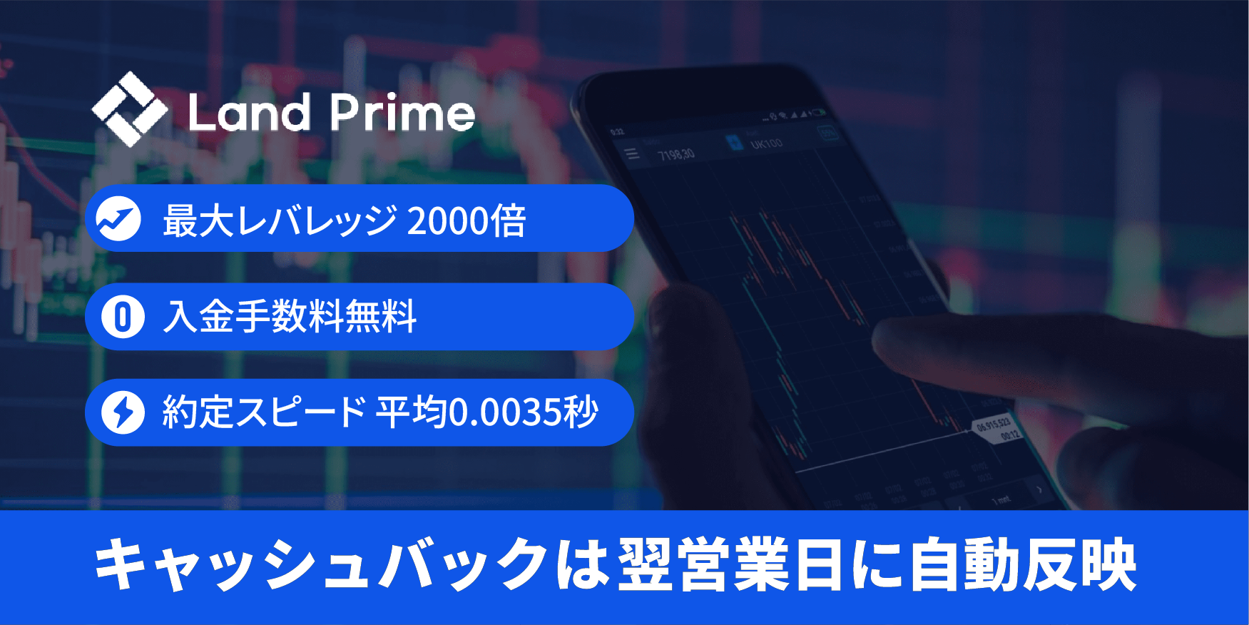 キャッシュバックアイランドを通じてLandPrimeの口座を開設し、取引を行うことでキャッシュバックが受けられます。