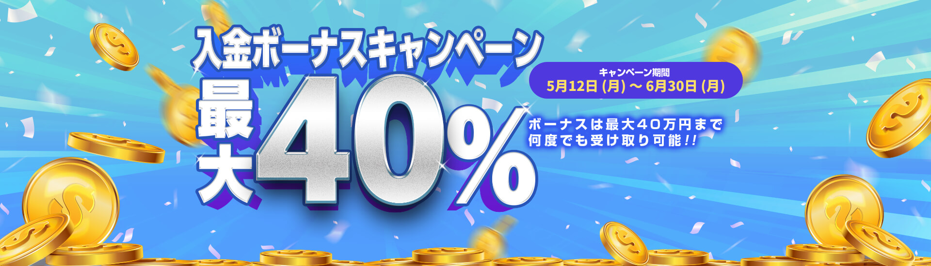 | ボーナスキャンペーン | 40%入金ボーナス | |||