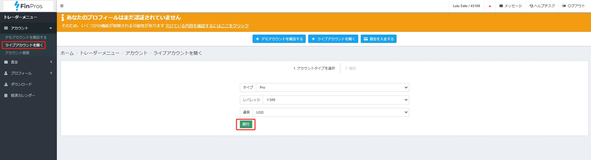多くのFX業者同様、FinProsでは未成年者の口座開設はできません。年齢確認が行われます。