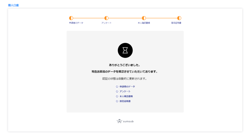 その後、以下の画面が表示されれば、口座開設が完了します。