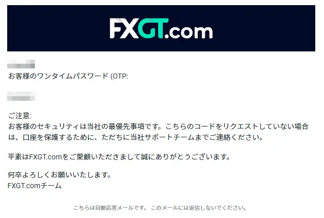 登録完了後、登録したメールアドレスにFXGTから認証メールが送られます。