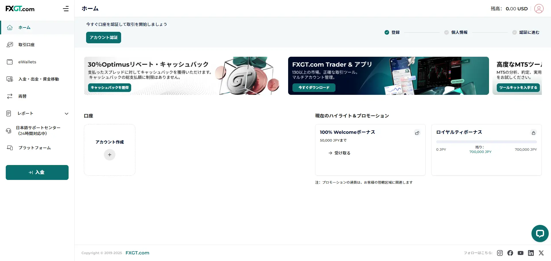 認証コードを入力したら、自動的にFXGTの会員ページにログインされます。