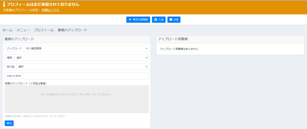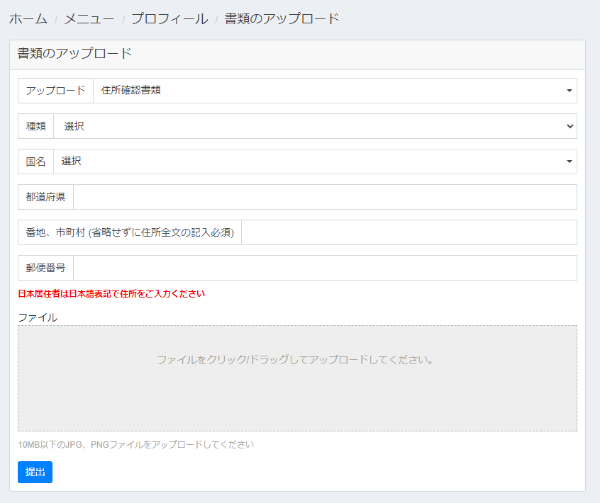 住所確認書類は、出⾦申請前までにアップロードをお願い致します。