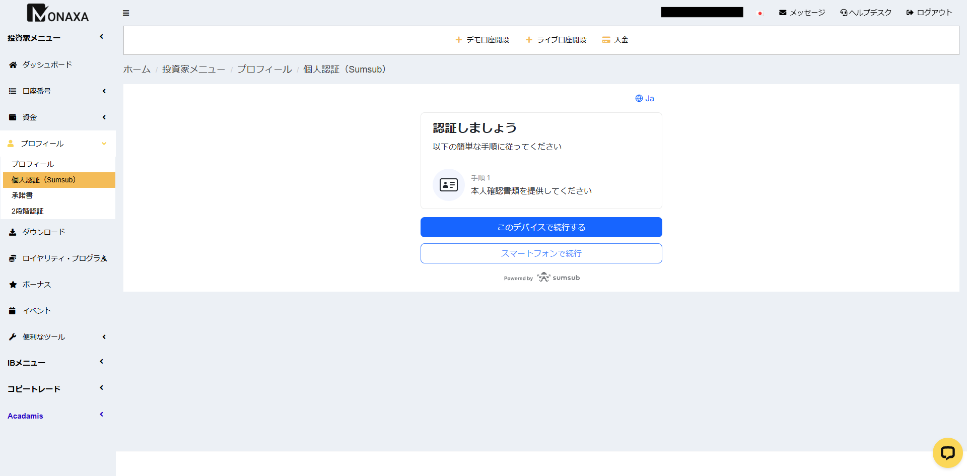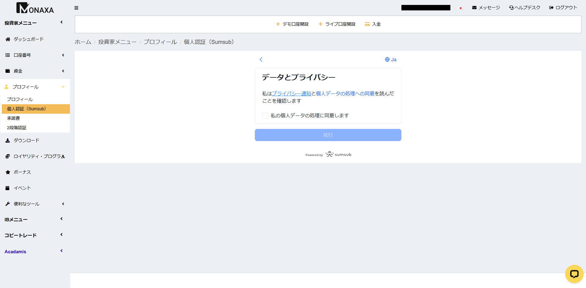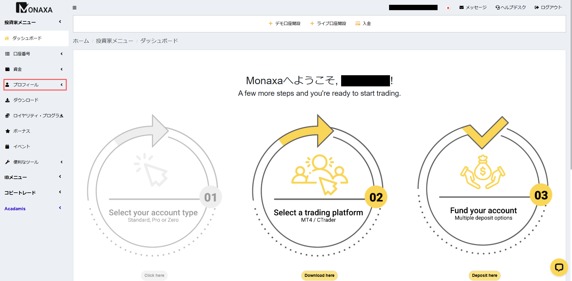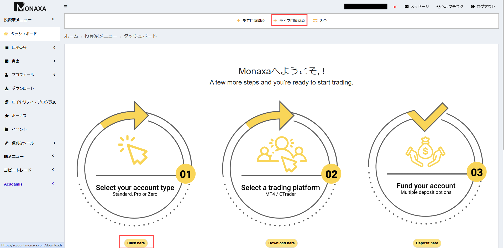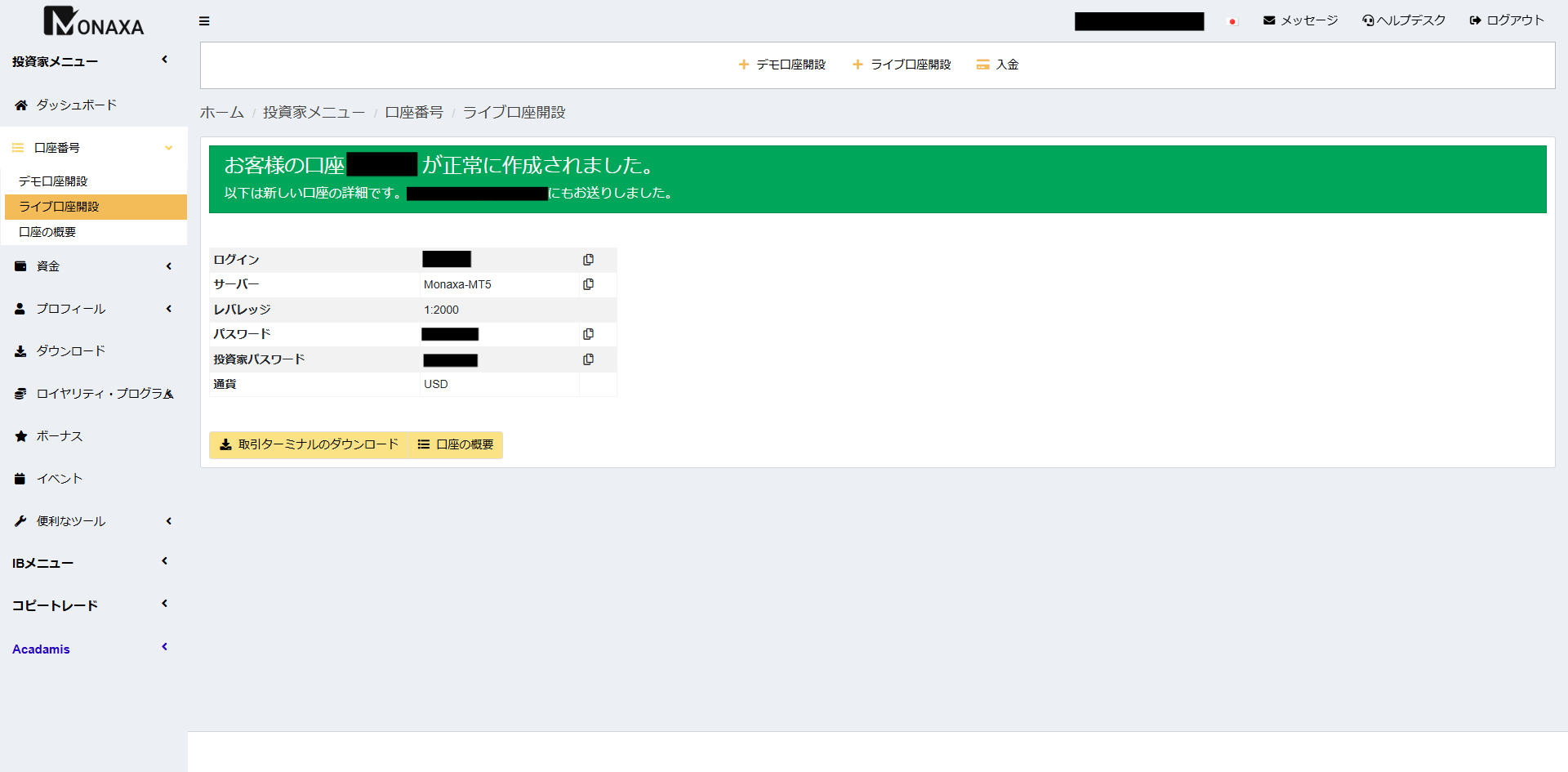 下の画像が表示されたら、Monaxa(モナクサ)のライブ口座開設の手続きは終了です。