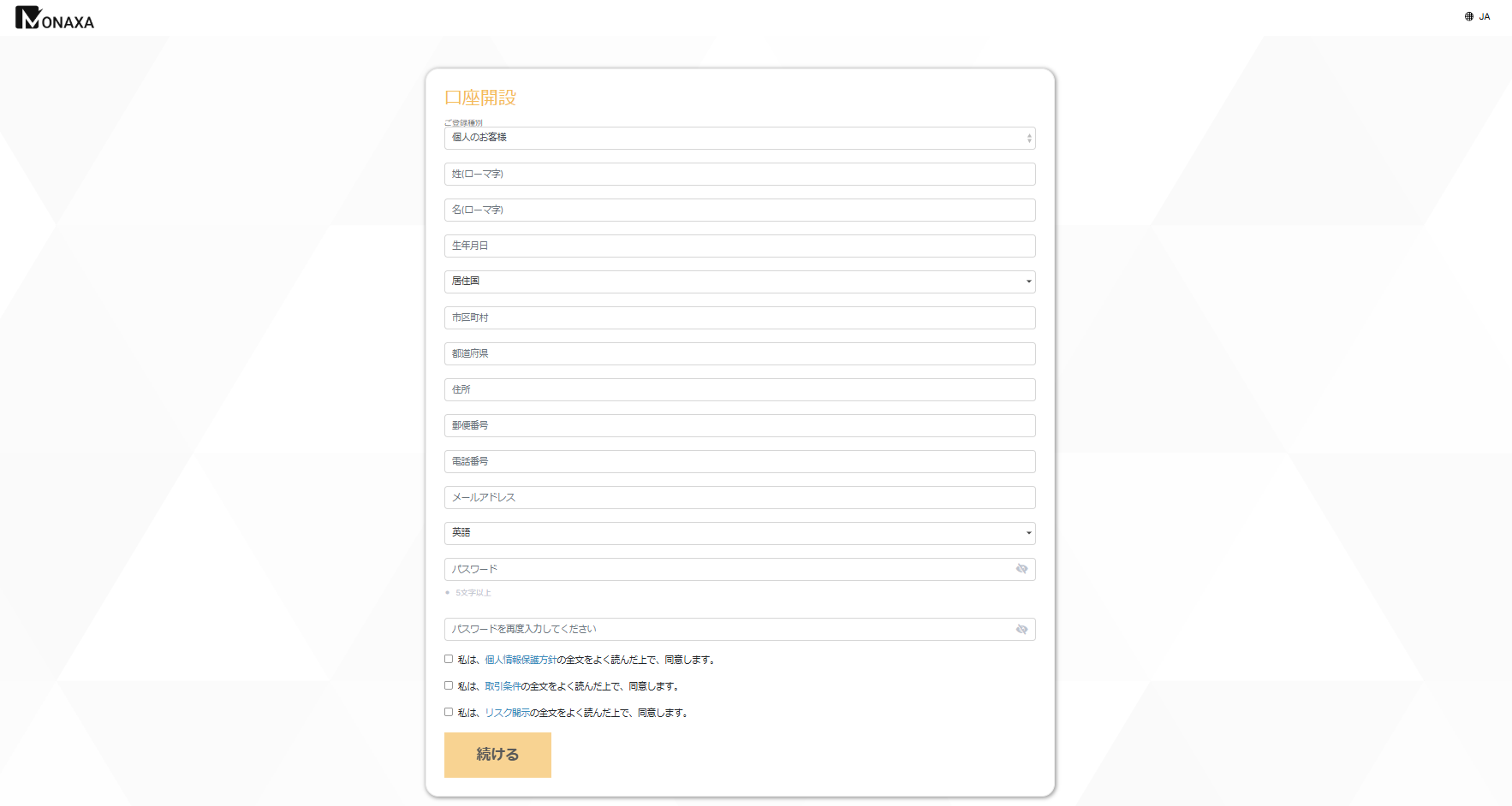 ここでは、 Monaxaの新規口座を開設する手順を画像付きで解説します。
