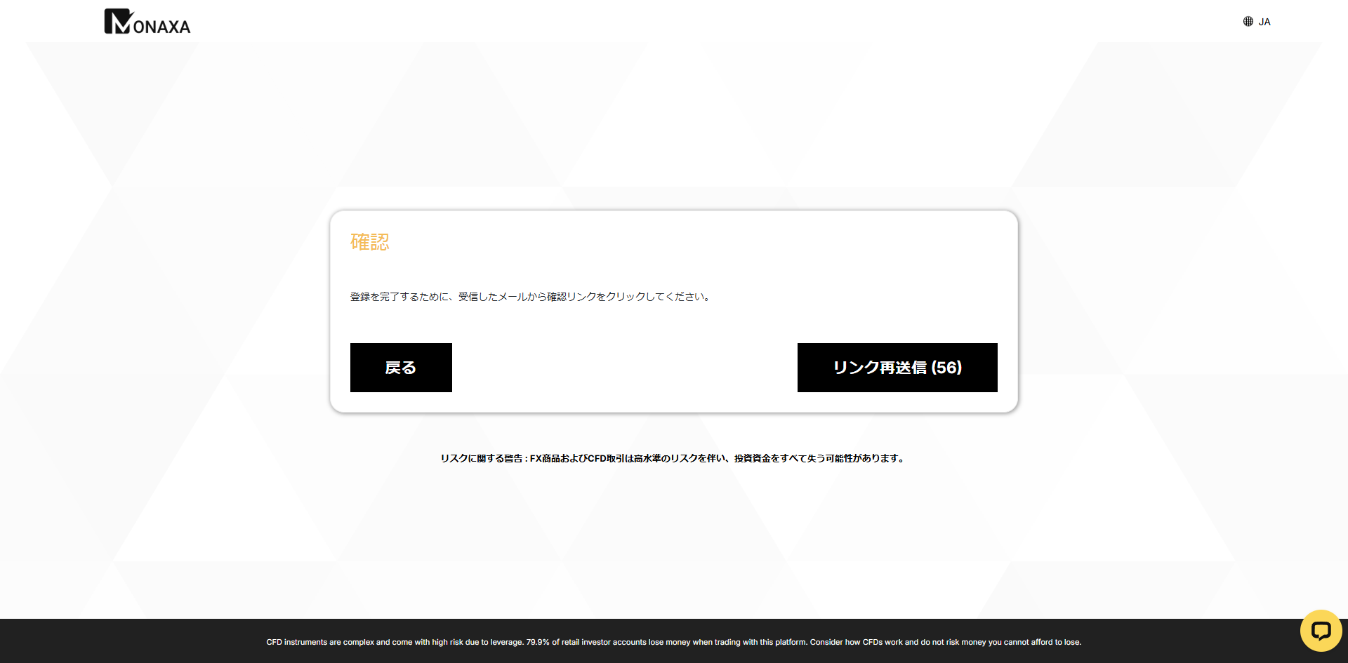 まずは弊社経由で指定されたボタンをクリックし、Monaxaの口座開設ページにアクセスします。