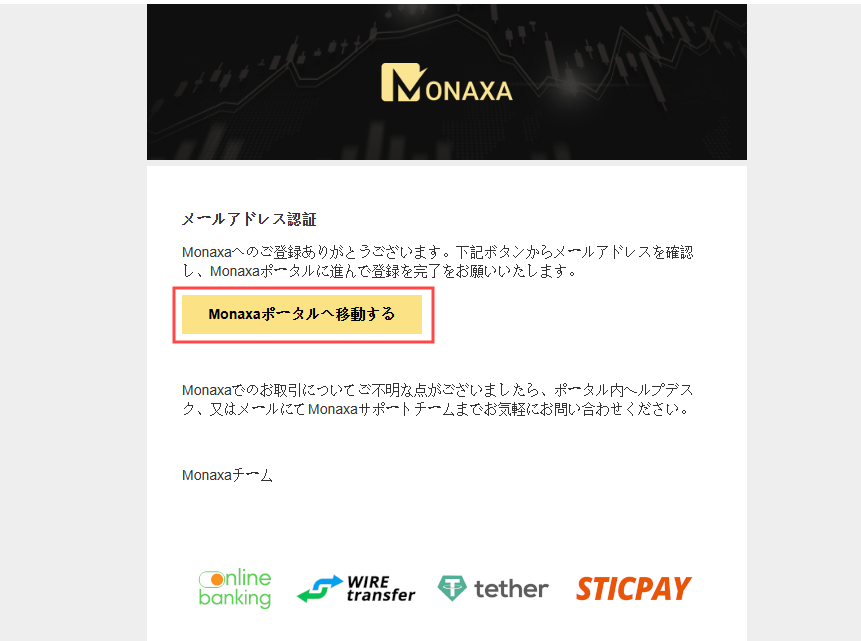 Monaxa(モナクサ)からのメールを開いたら、「Monaxaポータルへ移動する」ボタンをクリックします。