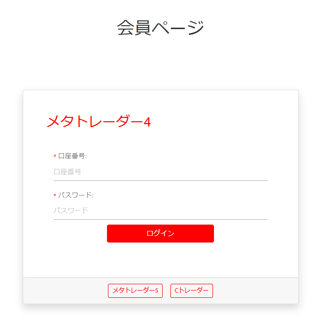 会員ページにアクセスし、口座番号とパスワードを入力後、「ログイン」ボタンをクリックしてください。