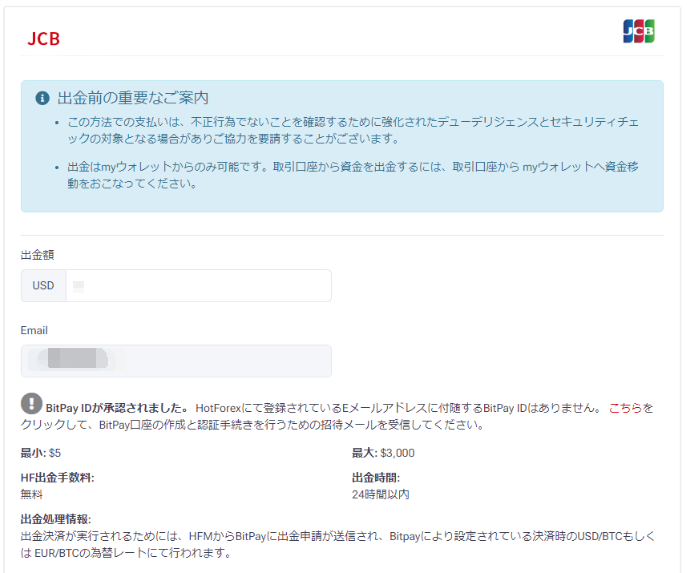 HFM(HotForex)でおすすめの出⾦⽅法はbitwalletです。