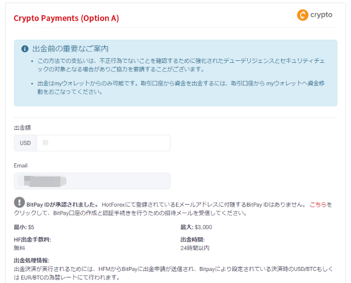 ここでは、HFMで得た利益を仮想通貨で出⾦する⼿順をご紹介します。