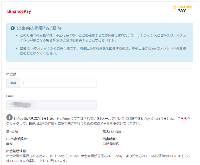 HFMでは、Binance Payを利⽤して簡単に出⾦が可能です。