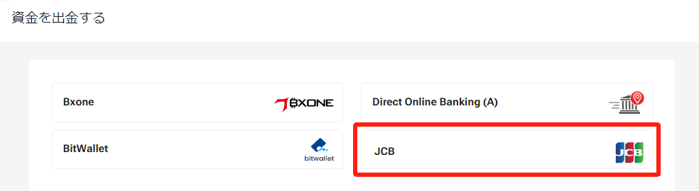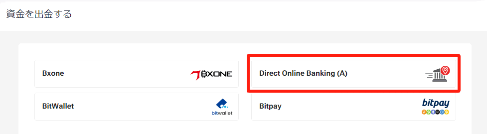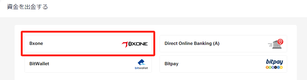 表⽰された出⾦⽅法⼀覧から「BXONE」をお選びください。