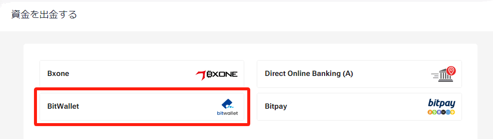 表⽰された出⾦⽅法⼀覧から「bitwallet」をお選びください。