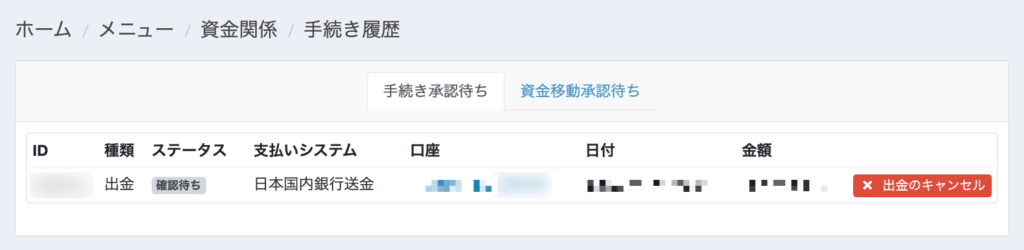 こちらの画⾯に遷移すると、出⾦申請の完了です。